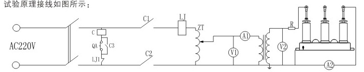按原理圖將相關(guān)儀表和設(shè)備連接好。測試前應(yīng)首先將電流繼電器LJ的整定值調(diào)至最小值(作為后備保護(hù)),然后將試驗(yàn)變壓器空載升壓,電流繼電器LJ應(yīng)不動作,將數(shù)字電流表A1的雖程調(diào)至5?20A(5KVA及以下容里試驗(yàn)變壓器可不加限流電阻Rl。