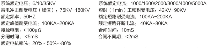 額定電壓,額定電流,開斷容量,額定電抗率(限流深度),安裝方式(水平或疊放),出線端子角度,
