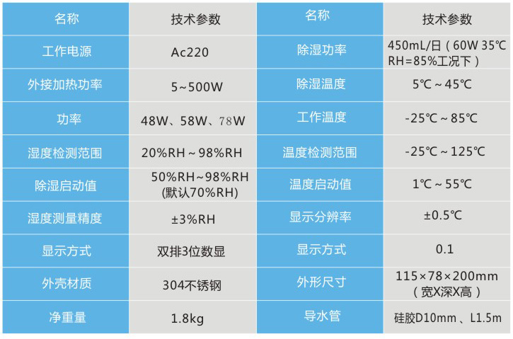 ?自動(dòng)運(yùn)行與手動(dòng)除濕功能切渙、溫度啟動(dòng)值和除濕啟動(dòng)值可調(diào);
